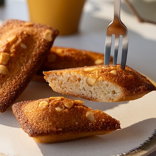 生地にローストしたマカダミアナッツのペーストを練り込み、マカダミアのクラッシュをのせた香ばしい風味の贅沢フィナンシェと、バターにこだわった王道のマドレーヌを詰め合わせました。
